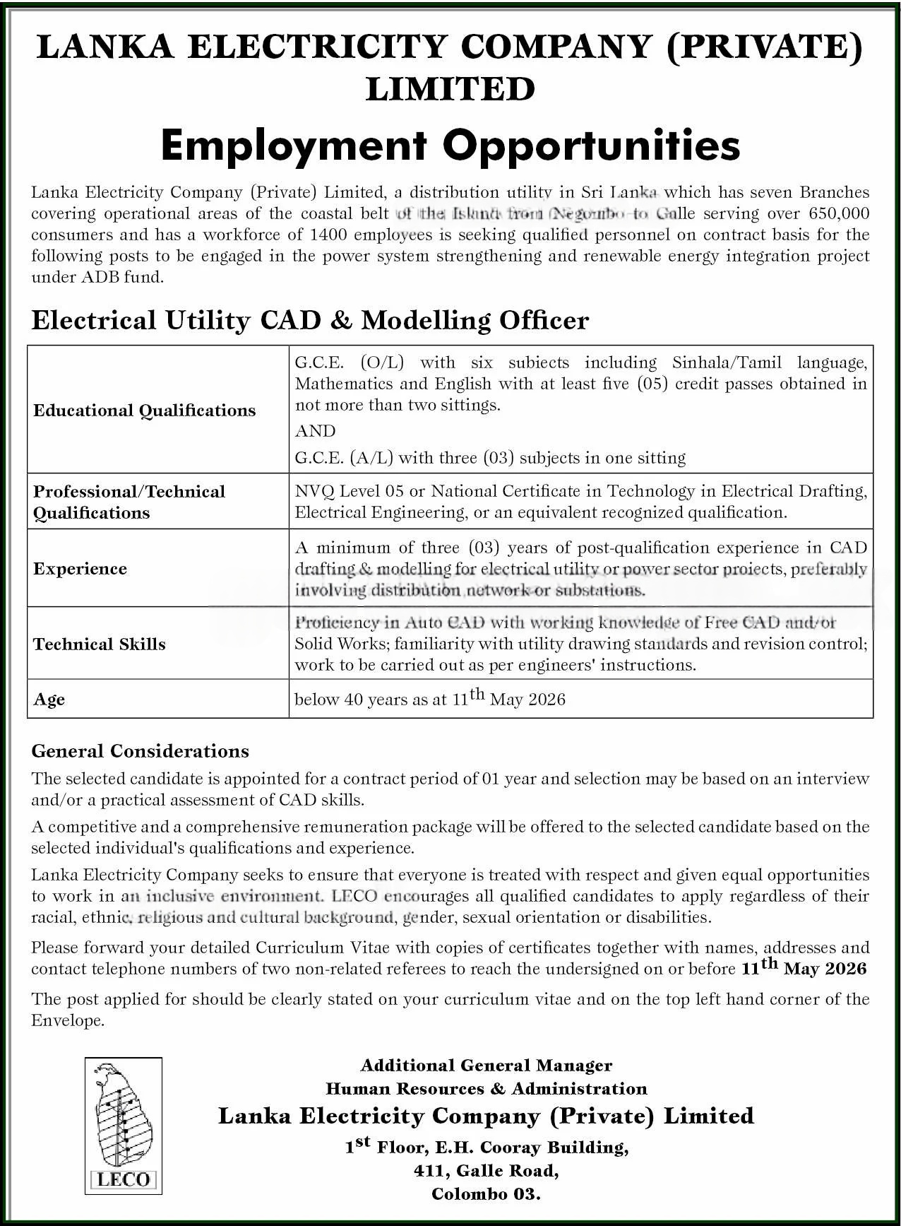 🏢 Company: Lanka Electricity Company (LECO)