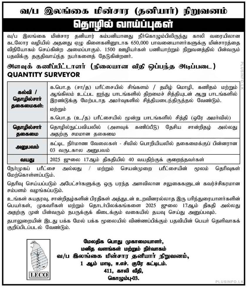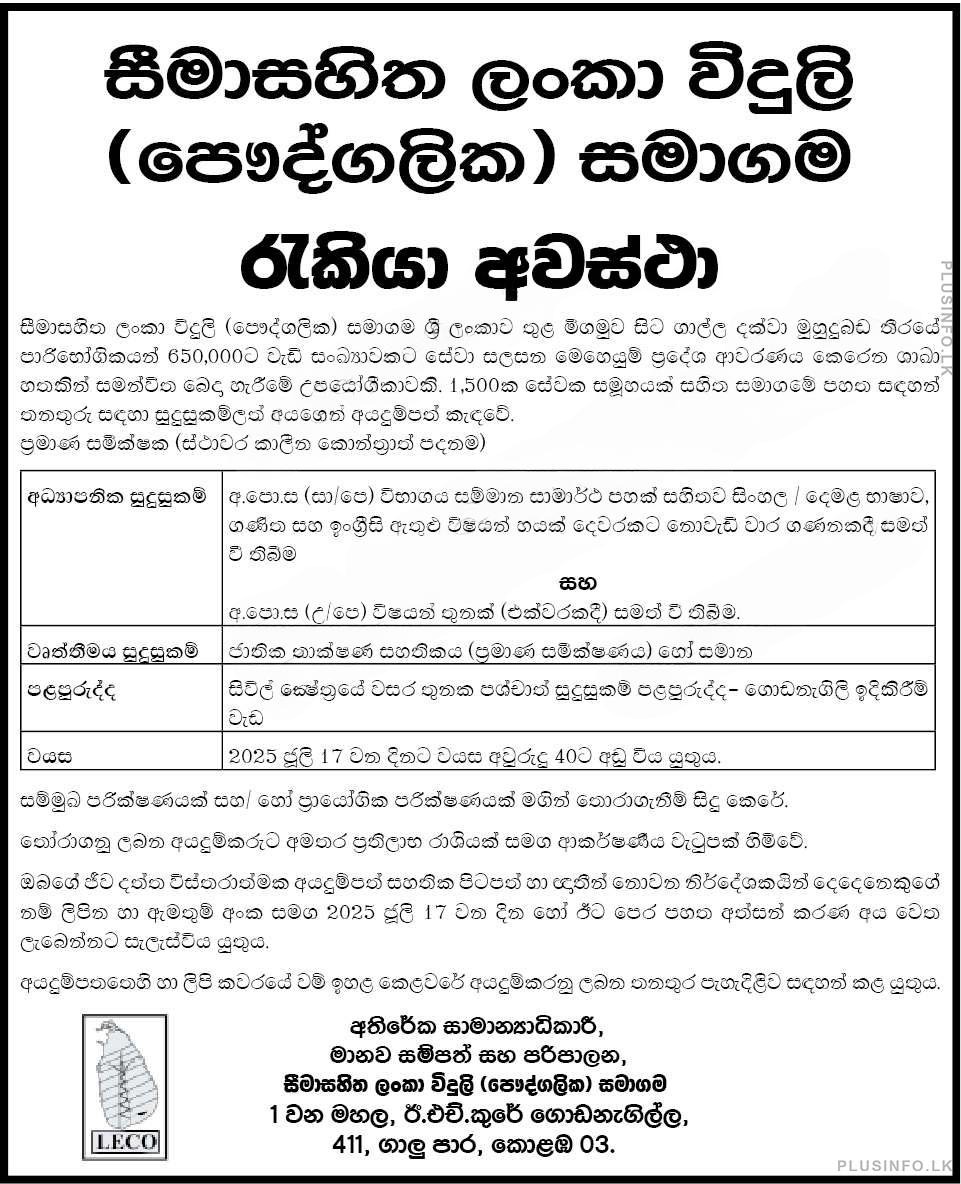| Organization | Lanka Electricity Company (Pvt) Ltd (LECO) |