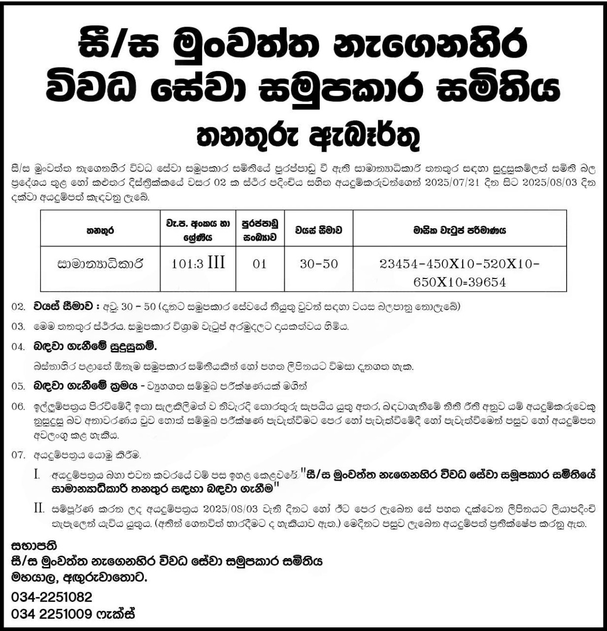 Munwatta East Multi-Purpose Cooperative Society Ltd (MPCS) – Department of Cooperative Development – Ministry of Trade, Commerce, Food Security and Cooperative Development