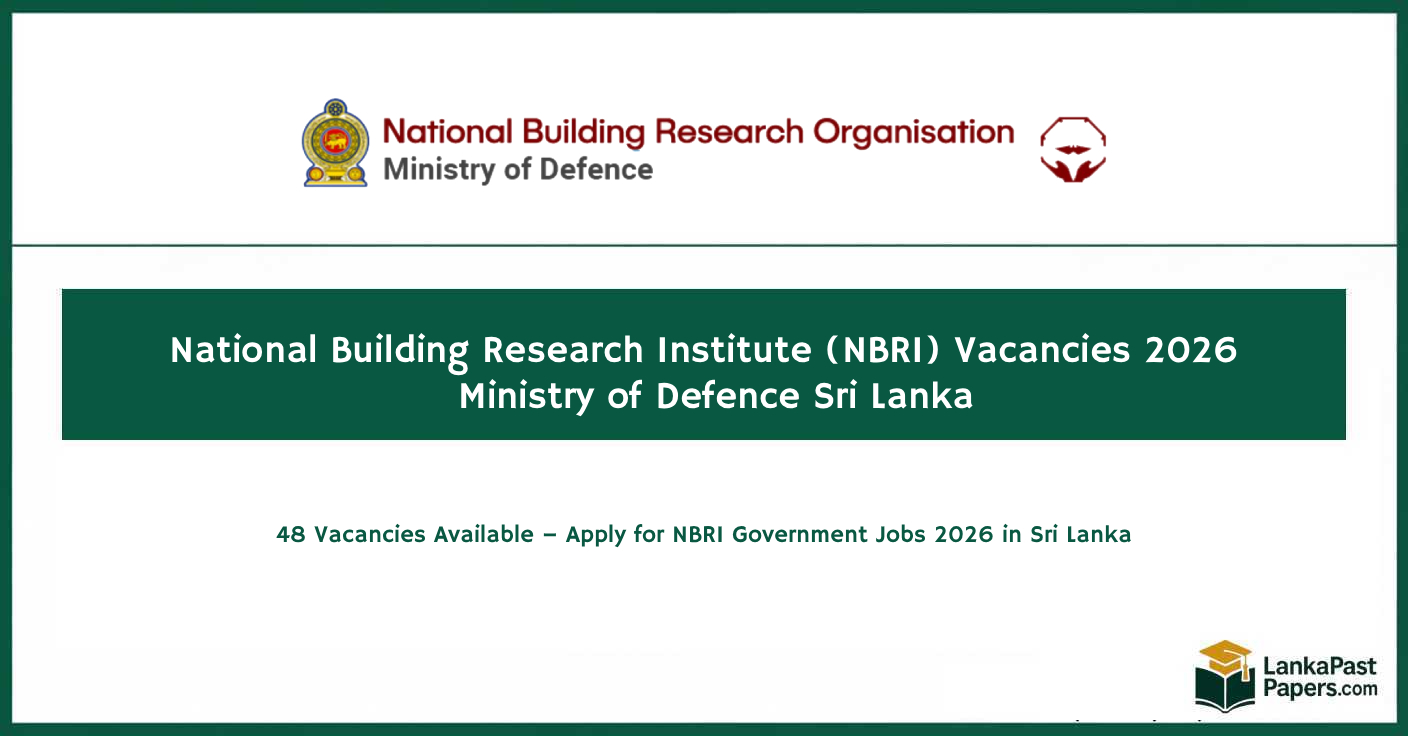 The National Building Research Institute (NBRI) under the Ministry of Defence has announced new government job vacancies for qualified Sri Lankan citizens. Applications are invited for Senior Scientist, Scientist, and Management Assistant (Technical) posts.