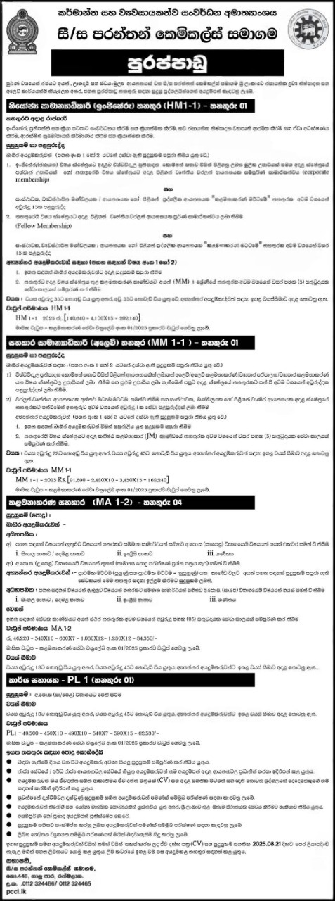 The Paranthan Chemicals Company Limited (PCCL) has announced job vacancies for August 2025. This state‑owned enterprise is inviting applications for the following positions (based on latest confirmed listings)