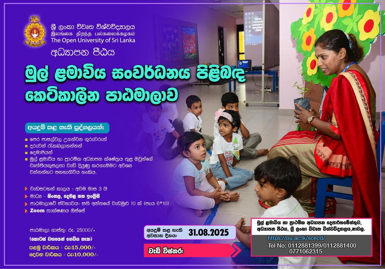 Calling Applications for Short Course on Early Childhood Development (2025 Intake) Conducted by The Open University of Sri Lanka (OUSL)