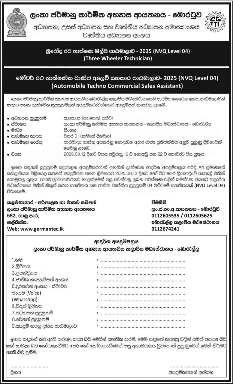 🏫 Conducted by: Borella Regional Centre, Ceylon German Technical Training Institute (CGTTI)